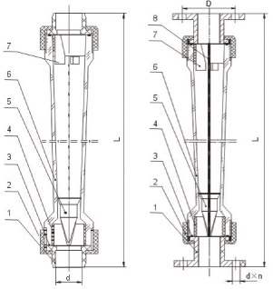 LZT-S塑料浮子流量計主要部件:錐管材料AS,浮子材料(ABS),插管連接(PVC),外螺紋連接尼龍(PA6),內(nèi)螺紋連接尼龍(PA66)。